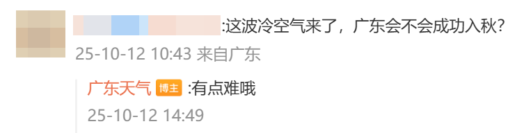 这波冷空气会让广东入秋吗?@广东天气 表示:有点难。